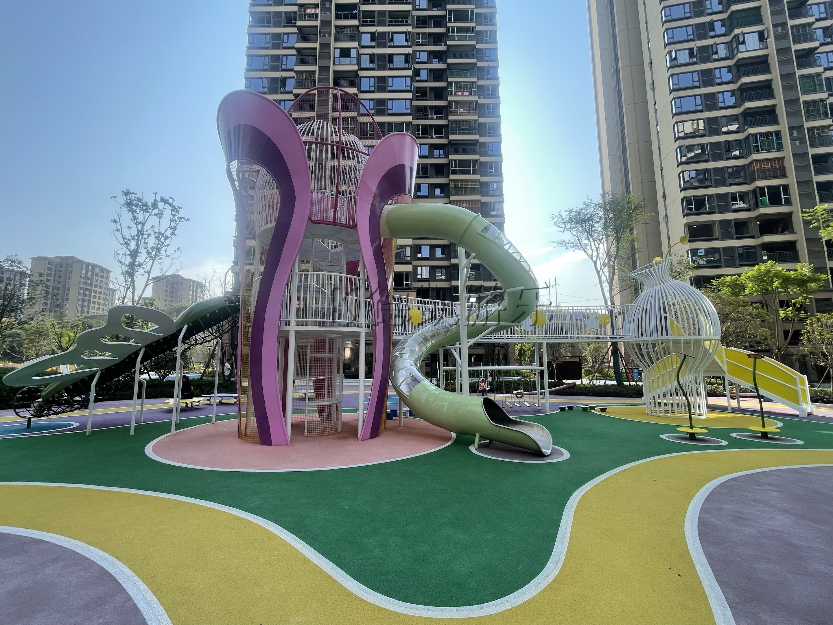 一個設施集成多種游戲功能,如集攀爬、滑滑梯、平衡木、秘密通道于一體的綜合性游樂設施。這類設施空間利用率高,能同時滿足不同年齡段孩子的需求。